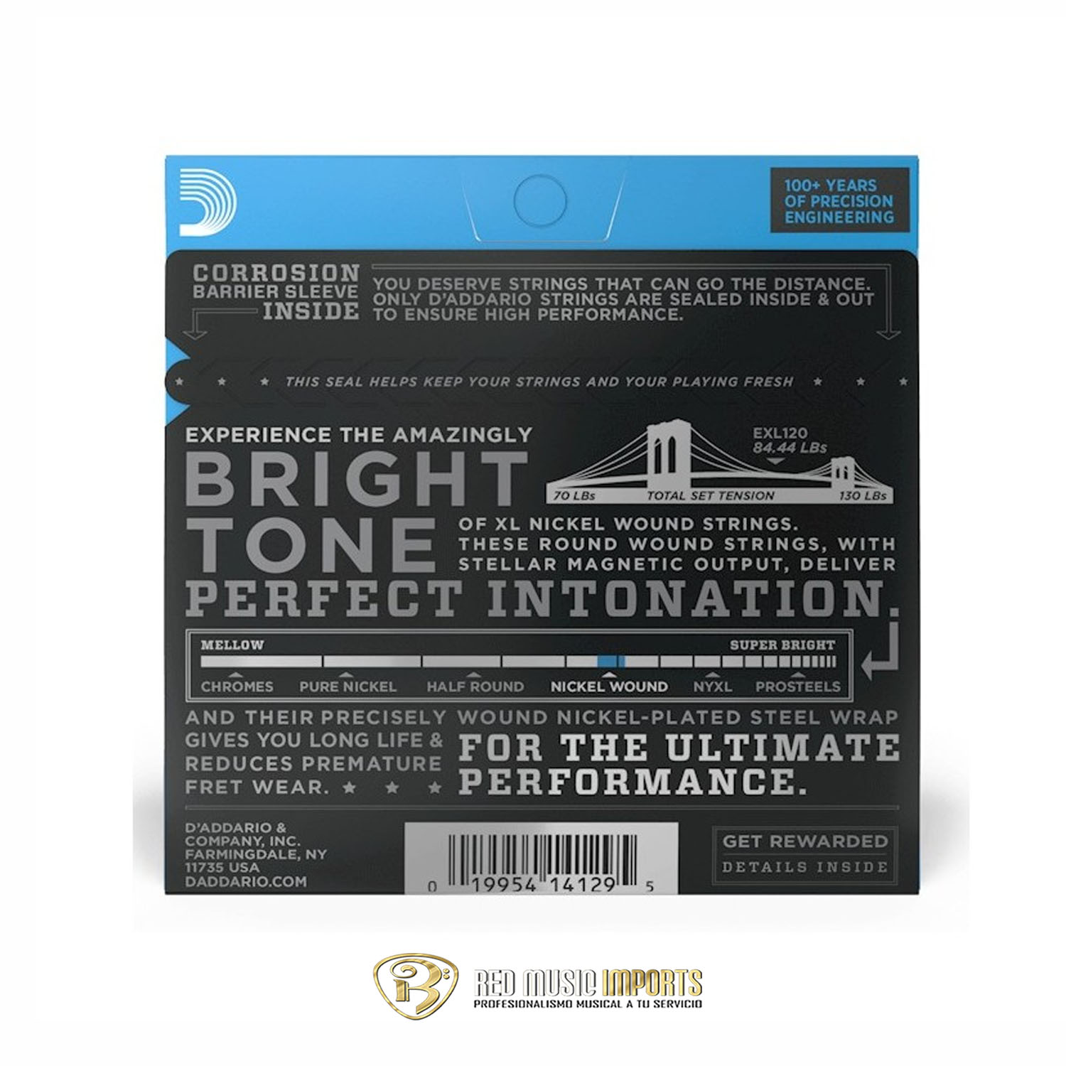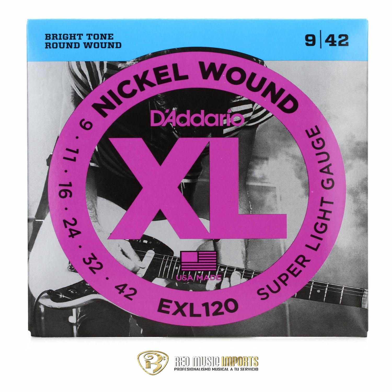 Las Cuerdas para Guitarra Eléctrica Daddario EXL120 son un juego de seis cuerdas de calibre Super Light (0.009, 0.011, 0.016, 0.024, 0.032, 0.042) para guitarra eléctrica. Están fabricadas con un núcleo hexagonal de acero de alto carbono y un entorchado de acero niquelado (Nickel-Plated Steel), lo que proporciona un tono brillante y versátil. Este set no tiene recubrimiento. El empaque es una bolsa VCI reciclable y resistente a la corrosión. Fabricadas en Estados Unidos.